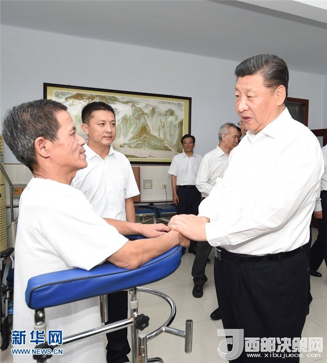 2016年7月28日,中共中央總書記、國家主席、中央軍委主席習近平到河北唐山市調(diào)研考察。這是習近平在唐山市截癱療養(yǎng)院看望慰問截癱傷員。 新華社記者 蘭紅光 攝