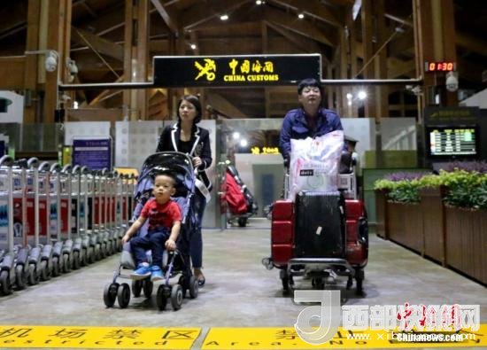 海南今年5月1日起實施59國人員入境旅游免簽政策,圖為當(dāng)日首批免簽游客抵三亞。王曉斌 攝