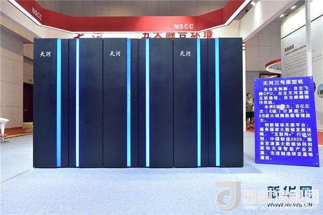 在天津梅江會展中心展出的我國新一代百億億次超級計算機“天河三號”原型機(2018年5月17日攝)。新華社記者李然攝