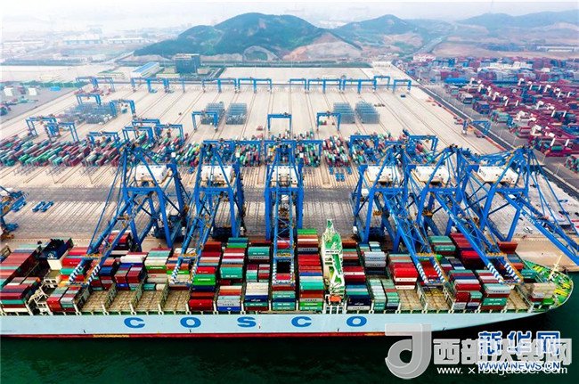 集裝箱船在青島港全自動化集裝箱碼頭靠泊作業(yè)(2017年5月10日攝)。青島港全自動化集裝箱碼頭是我國完全自主創(chuàng)新并設計建設的亞洲首個、全球領先的全自動化碼頭。新華社記者朱崢攝