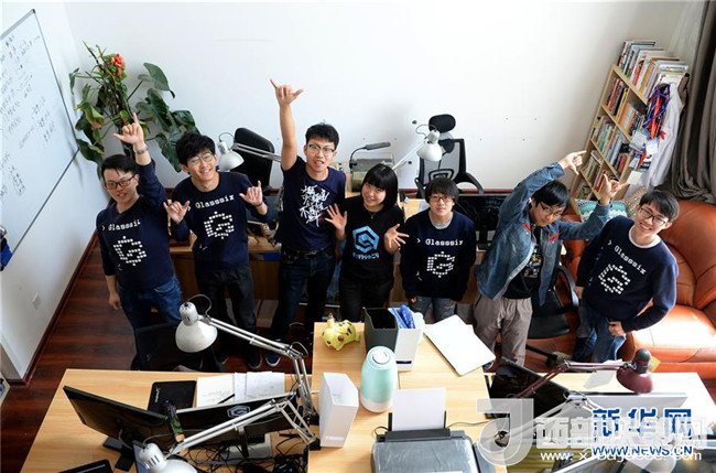 陜西第六鏡科技文化有限責任公司運營團隊的成員在工作室合影(2017年4月17日攝)。兩名西北工業(yè)大學自動化學院的學生在2014年本科尚未畢業(yè)時就一起組建了“第六鏡”。2017年1月,“第六鏡”突破了技術瓶頸,其人臉識別技術也取得了國際權威評測體系的認可,達到了國際領先水平。新華社記者劉瀟攝