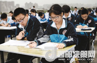 27日,來自西安各區(qū)縣的中學(xué)生在西安大明宮含元殿遺址進(jìn)行筆試答題。