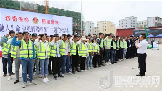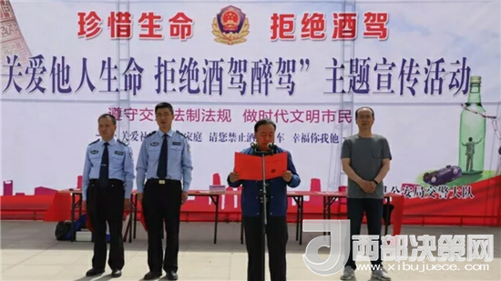 西部決策網(wǎng)——西部大開發(fā)訊(帥華鋒 通訊員 馬存福 蘇娟)認真貫徹落實全省春運總結(jié)暨春夏反超速反疲勞反酒駕綜合治理視頻會議精神,縱深推進全縣“三反一查”及酒駕宣傳教育活動。5月29日,甘肅西和縣公安局交警大隊在城區(qū)避難廣場隆重舉行“關(guān)愛他人生命 拒絕酒駕毒駕”主題宣傳活動,進一步弘揚交通安全法治精神,普及交通安全風險防范知識,倡導通行規(guī)則、守法自律、社會責任、文明交通和公眾道德意識,倡導全民抵制酒駕醉駕違法犯罪行為,形成人人抵制交通違法、人人踐行文明交通、全社會共建共享文明交通的良好風尚。西和縣縣委常委、政法委書記嚴倉一出席活動并講話,交警、運管、亨通、萬通、隴運西和分公司的負責人及駕駛?cè)舜?,福安、祥豐駕校學員代表共計200余人參加了活動。