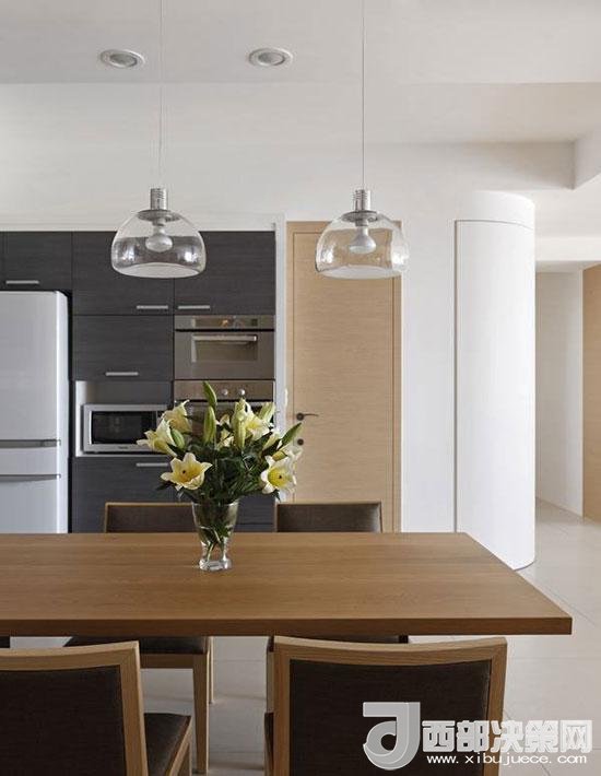 透明的圓弧形吊燈成為餐廳里的點(diǎn)睛之筆,輕巧又有設(shè)計(jì)感。