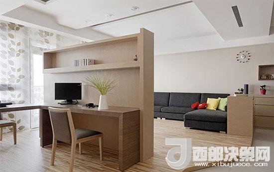 設(shè)計(jì)師打開原客廳后方的小房間格局,再以半高木柜墻體形塑穿透感空間分野。