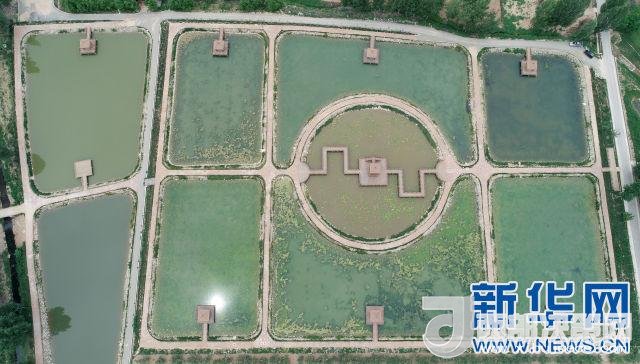 這是黃龍縣石堡鎮(zhèn)梁家河村生態(tài)魚塘(6月1日無(wú)人機(jī)拍攝)。