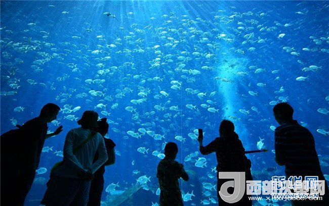游客在海南三亞亞特蘭蒂斯酒店內(nèi)的水族館游玩(2月17日攝)。