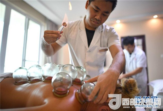 在海南三亞國際友好中醫(yī)療養(yǎng)院,醫(yī)師為來自俄羅斯的游客進(jìn)行中醫(yī)理療(6月2日攝)。