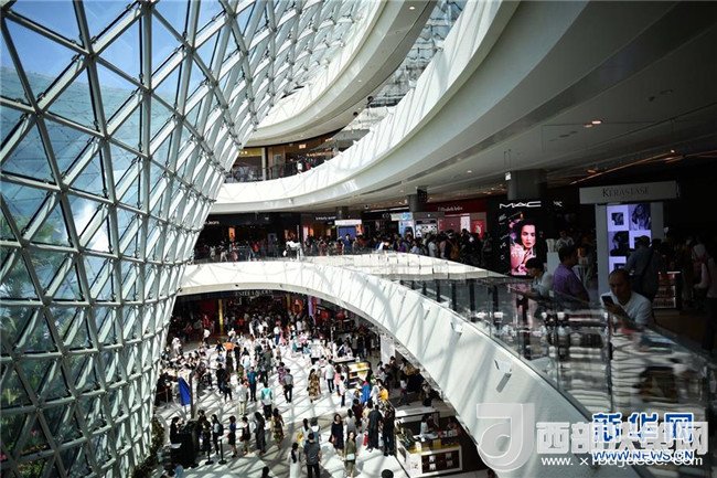 顧客在海南三亞海棠灣免稅店內(nèi)游覽、購物(2月18日攝)。