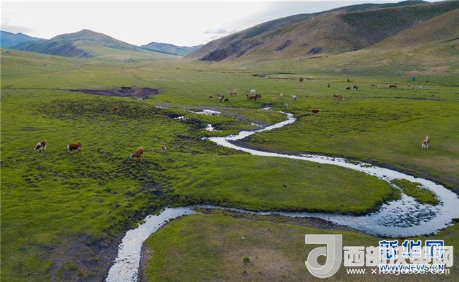6月6日,牛群在內(nèi)蒙古赤峰市阿魯科爾沁草原上覓食。 新華社記者 彭源 攝