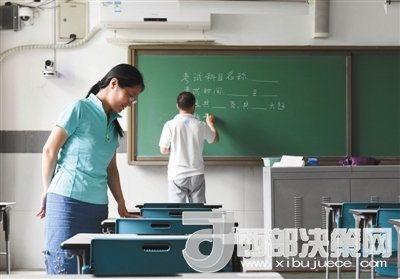 北京101中學(xué)是海淀區(qū)考場最多的一個考點,共有文科考場10個、理科考場20個、兩間備用考場。各位監(jiān)考老師在結(jié)束上午的考前培訓(xùn)后來到了各自負(fù)責(zé)的考場,對布置情況進(jìn)行最后的檢查。