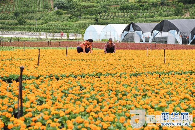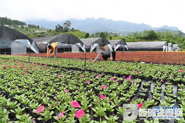 6月12日,艷山紅村村民在村里的花卉基地勞作。近年來(lái),重慶市武隆區(qū)羊角鎮(zhèn)艷山紅村探索“公司+村集體+農(nóng)戶+基地”的經(jīng)營(yíng)模式,發(fā)展花卉種植等產(chǎn)業(yè),實(shí)現(xiàn)了“農(nóng)村資源變資產(chǎn)、資金變股金、農(nóng)民變股東”,幫助當(dāng)?shù)剞r(nóng)民通過(guò)保底分紅、效益分紅、務(wù)工收益等方式脫貧增收。新華社記者王全超攝