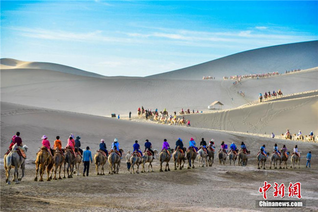 甘肅敦煌端午小長假迎旅游高峰 逾12萬人暢游大漠