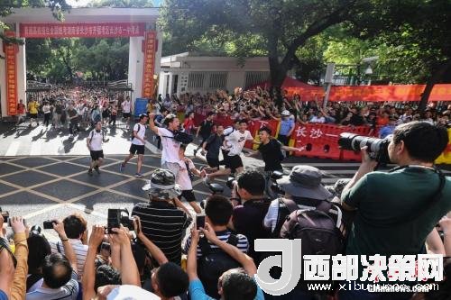 資料圖:6月8日下午,湖南長沙市一中考點外,考生跑出考場,慶祝高考結束。 中新社記者 楊華峰 攝