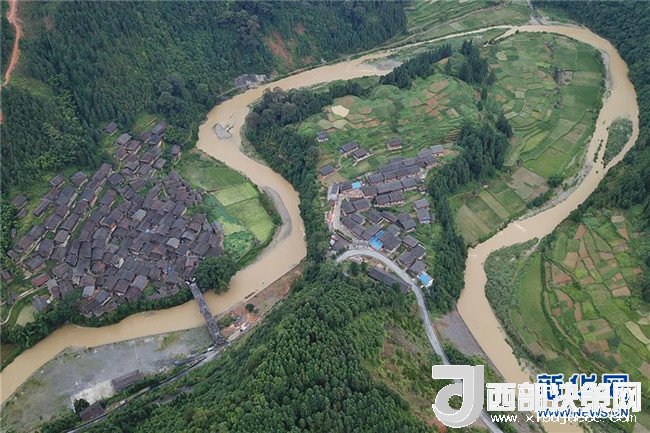 煙雨中的貴州省榕江縣寨蒿鎮(zhèn)三洲村風(fēng)光(6月24日無人機拍攝)。