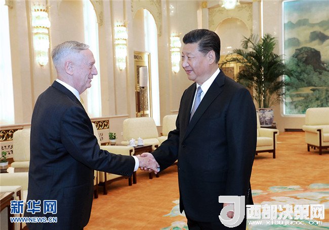 國家主席習(xí)近平27日在人民大會堂會見了來訪的美國國防部長馬蒂斯。