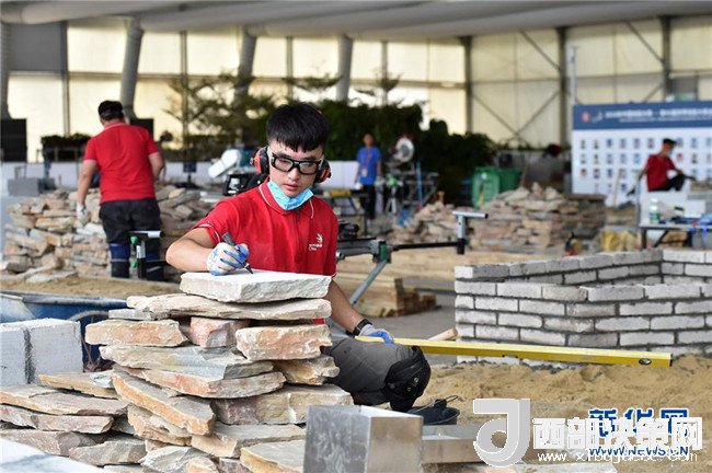 在第45屆世界技能大賽全國(guó)選拔賽廣東賽區(qū)比賽現(xiàn)場(chǎng),選手在園藝項(xiàng)目中建造“小公園”(6月25日攝)。新華社記者 梁旭 攝