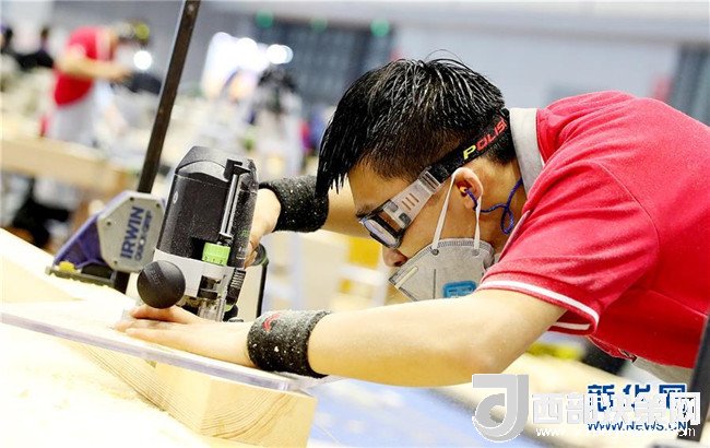 在第45屆世界技能大賽全國(guó)選拔賽上海賽區(qū)比賽中,一名木工項(xiàng)目參賽選手在切割木材(6月13日攝)。新華社記者 方喆 攝