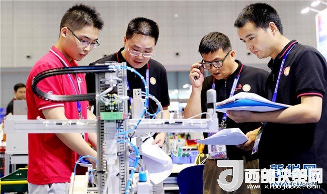 在第45屆世界技能大賽全國(guó)選拔賽廣東賽區(qū)比賽現(xiàn)場(chǎng),選手們?cè)谄鲋?xiàng)目中進(jìn)行操作(6月25日攝)。新華社記者 梁旭 攝