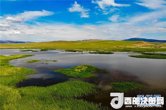 7月3日在新疆哈密天山風(fēng)景區(qū)拍攝的伊吾馬場濕地。新華社發(fā)(普拉提 攝)