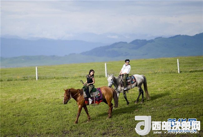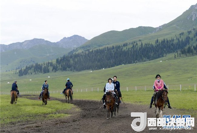游客在那拉提“空中草原”騎馬游玩(7月8日攝)。