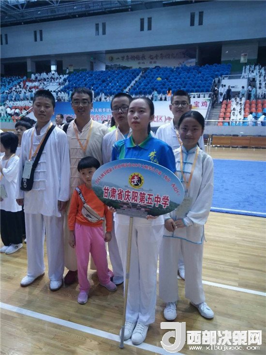 為了參加本次比賽,慶陽市第五中學(xué)武術(shù)隊(duì)積極備戰(zhàn),通過選拔,組成了一支由校長張建軍為領(lǐng)隊(duì),申正罡老師為教練的七人代表隊(duì),分別參加B、C組男、女太極拳及太極刀劍的比賽。