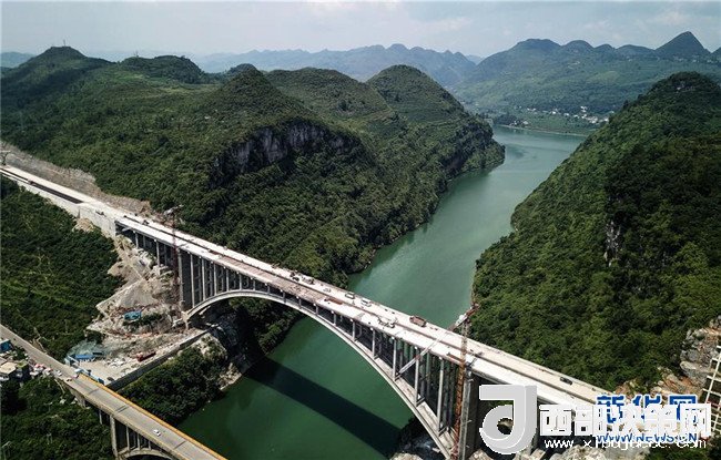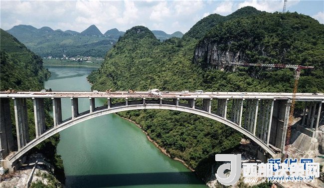 貴州織普高速公路控制性工程——夜郎湖特大橋日前實(shí)現(xiàn)全線貫通,預(yù)計(jì)本月底可全面建成。該橋由貴州橋梁建設(shè)集團(tuán)于2016年5月開始施工,全長391.4米,拱圈凈跨徑210米。據(jù)了解,織普高速全長約52公里,建成后由織金縣到普定縣的車程可從原來的2.5小時(shí)縮短到35分鐘,將大幅提高通行效率,進(jìn)一步推動(dòng)沿線經(jīng)濟(jì)發(fā)展。新華社記者 陶亮 攝