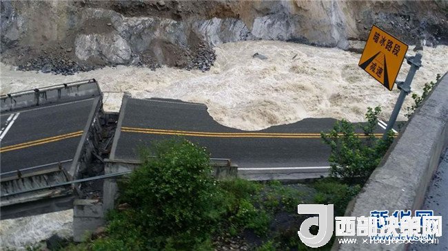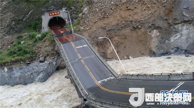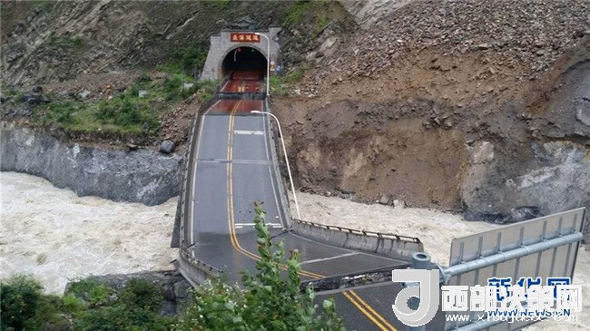 7月13日在四川茂縣國道213線疊溪隧道旁拍攝的垮塌橋梁。記者從當(dāng)?shù)亟煌ú块T獲悉,7月13日凌晨5點(diǎn)左右,受持續(xù)強(qiáng)降雨帶來的水位上漲影響,在四川省阿壩藏族羌族自治州茂縣境內(nèi),國道213線汶川至川主寺公路K759+550米處、疊溪隧道旁一座跨越岷江的隧道連接橋垮塌,導(dǎo)致道路中斷。由于此前已經(jīng)對車輛限行,垮塌時無車輛通過,無人員傷亡。當(dāng)?shù)叵嚓P(guān)部門正密切監(jiān)測該橋梁狀態(tài),避免發(fā)生次生災(zāi)害。新華社發(fā)