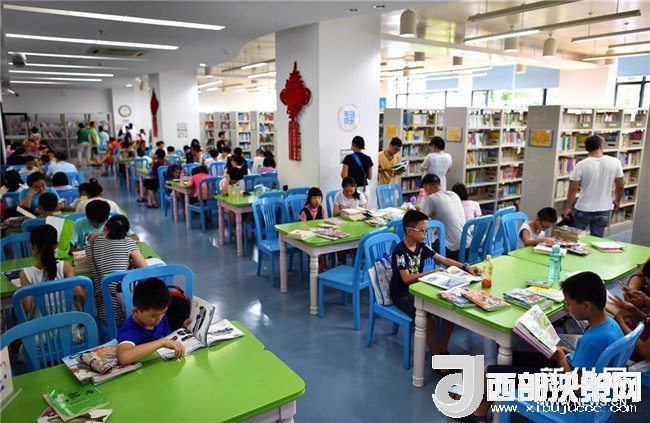 暑假期間,許多家長帶著孩子來到海南省圖書館讀書、學習,在這里度過充實的假日時光。 新華社記者 郭程 攝