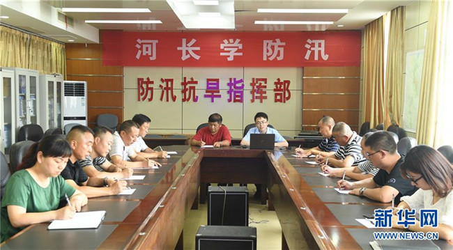 安徽省明光市水利專家給河長(zhǎng)上防汛課(2018年7月10日攝)。進(jìn)入汛期,明光市水務(wù)部門(mén)開(kāi)設(shè)“河長(zhǎng)大講堂”,邀請(qǐng)轄區(qū)多段河道的河長(zhǎng)進(jìn)行防汛工作業(yè)務(wù)培訓(xùn)。