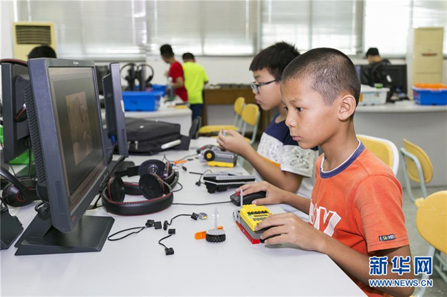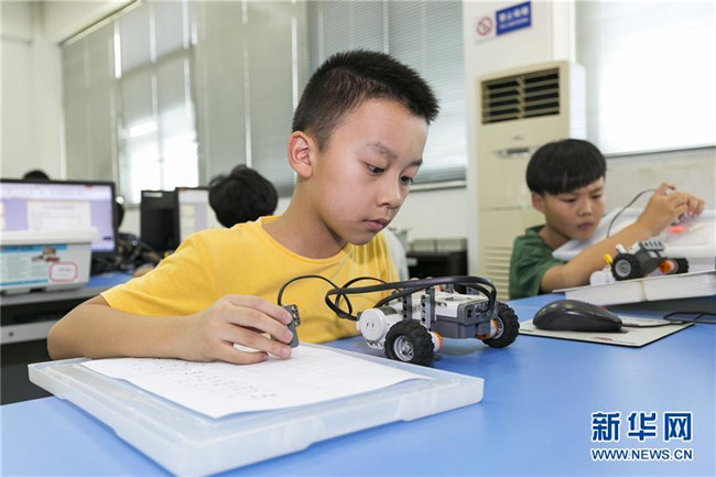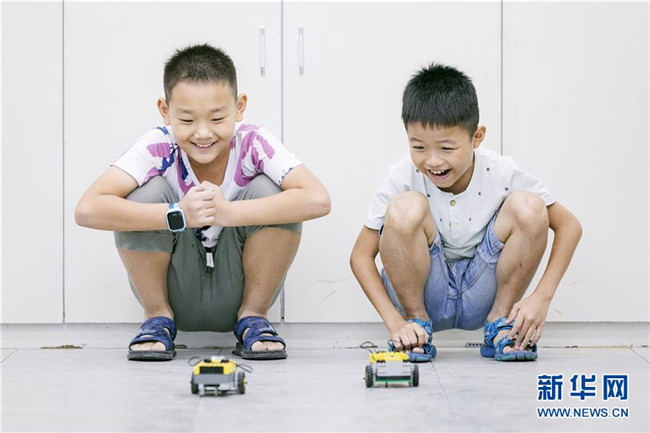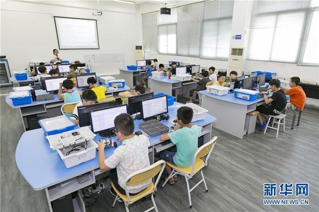 暑假期間,福建省晉江市舉辦青少年科普公益課堂,增強青少年的創(chuàng)新意識,豐富學(xué)生們的假期生活。 新華社發(fā)(賴進財 攝)