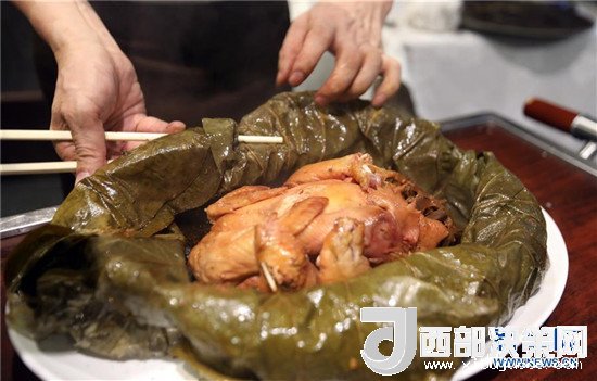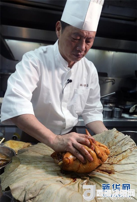 杭州酒家老板吳瑞康現(xiàn)場(chǎng)制作本店招牌菜“叫化雞”(6月16日攝)。新華社記者 李鵬 攝