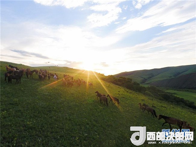 盛夏時節(jié),內(nèi)蒙古錫林郭勒草原一碧千里,遙接天際。藍天白云之下,牛羊悠閑自在,馬群奔馳其中,風光旖旎。 新華社記者 劉磊 攝
