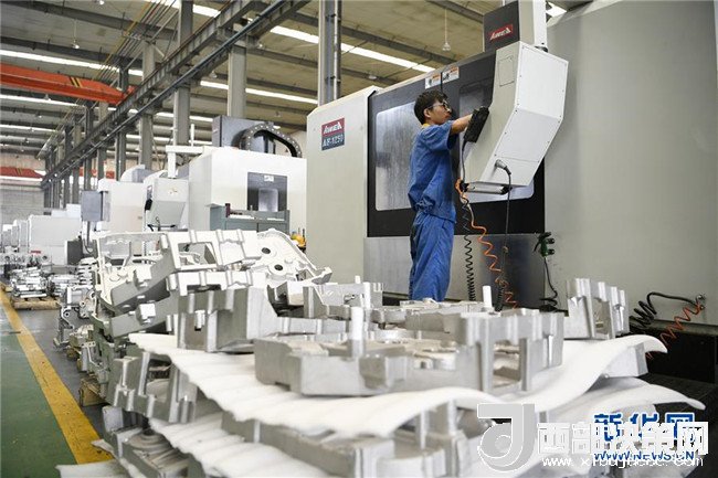 位于石嘴山市的寧夏維爾鑄造有限公司,工人在加工鑄件(7月31日攝)。 新華社記者 王鵬 攝