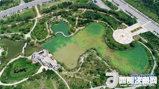 在寧夏石嘴山大武口發(fā)電廠第二排灰場上建起的石嘴山人民公園(7月31日無人機拍攝)。 新華社記者 王鵬 攝