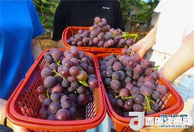 近日,江西省樟樹市現(xiàn)代農(nóng)業(yè)科技示范園內的葡萄進入采摘期,吸引眾多游客前來觀光、采摘。近年來,該農(nóng)業(yè)園著力打造農(nóng)業(yè)科技示范與觀光度假為一體的旅游休閑項目,推動農(nóng)業(yè)、旅游業(yè)雙發(fā)展。