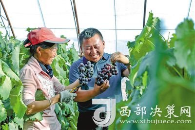村民劉喜梅、郭翠蓮和姐妹們有說有笑地摘著大串葡萄,發(fā)自內(nèi)心的喜悅洋溢在臉上。“過去,就種點地靠天吃飯,趕上好年景,辛辛苦苦在地里一年忙到頭,人均收入不到1000元?,F(xiàn)在我們不用頂著烈日看天吃飯了,在棚里摘葡萄、修枝剪葉,每月就掙3000到4500多元,這是做夢都想不來的好事。這得感謝黨的好政策!感謝王萬斌!”劉喜梅高興地說。