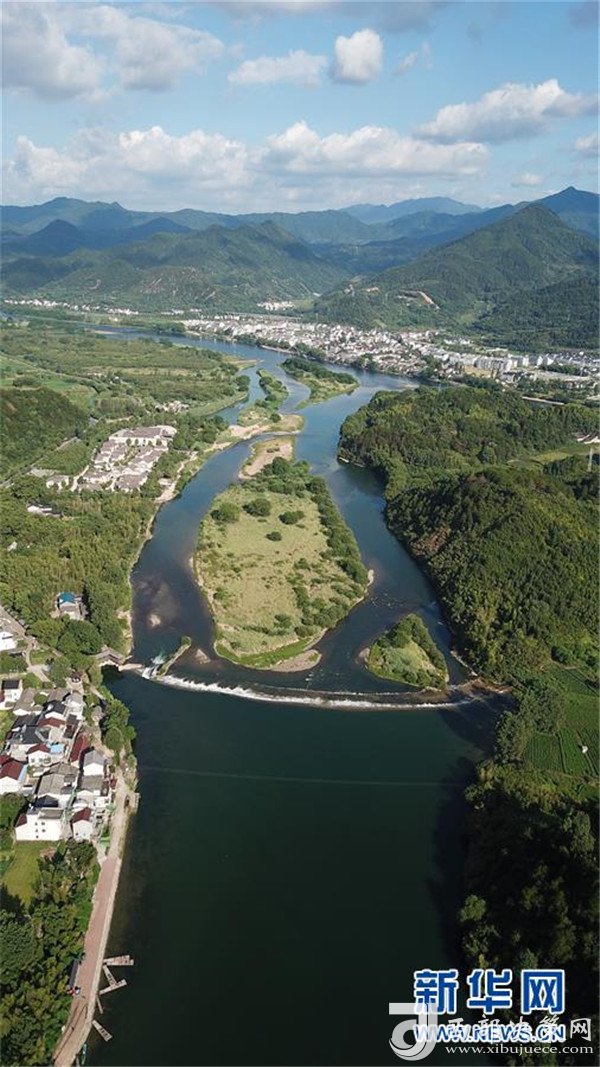 這是麗水市蓮都古堰畫鄉(xiāng)小鎮(zhèn)的“古堰”通濟(jì)堰(8月15日無(wú)人機(jī)拍攝)。