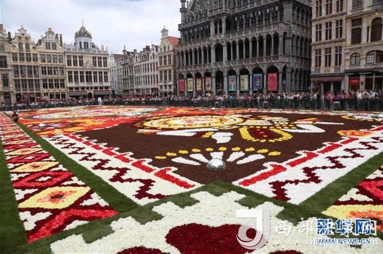 8月16日,由50多萬朵秋海棠鋪就的鮮花地毯亮相比利時(shí)布魯塞爾大廣場(chǎng)。
