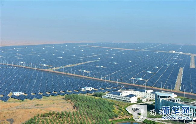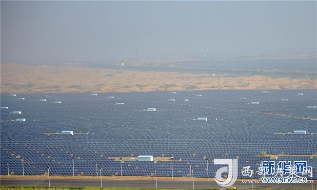 8月22日拍攝的中衛(wèi)市沙漠光伏產(chǎn)業(yè)園。新華社記者肖瀟攝