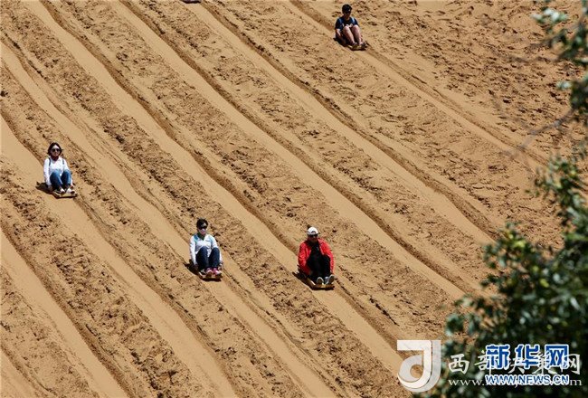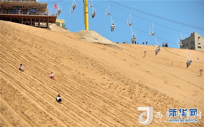 8月22日,游客在中衛(wèi)市沙坡頭旅游景區(qū)體驗(yàn)滑沙。沙坡頭旅游景區(qū)因地制宜發(fā)展沙漠旅游,旺季日接待游客量達(dá)兩萬(wàn)人次。新華社記者伍婧丹攝