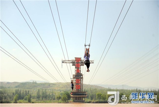 8月22日,游客在中衛(wèi)市沙坡頭旅游景區(qū)體驗(yàn)溜索。沙坡頭旅游景區(qū)因地制宜發(fā)展沙漠旅游,旺季日接待游客量達(dá)兩萬(wàn)人次。新華社記者任鵬飛攝