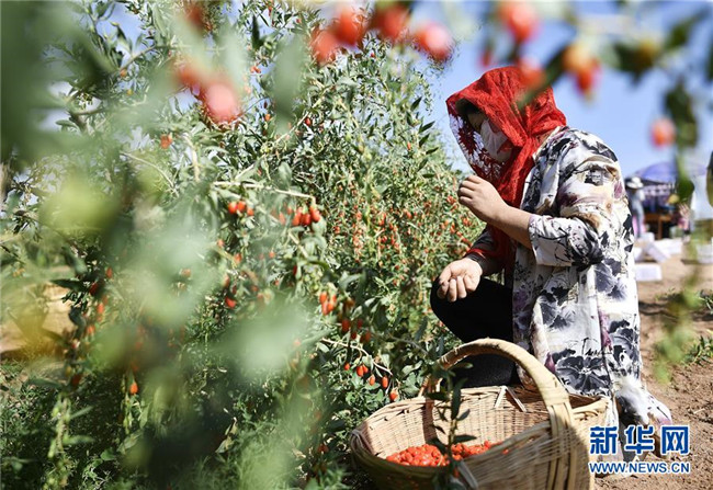 農(nóng)民在寧夏吳忠市同心縣潤德莊園枸杞基地采摘枸杞(6月22日攝)。地處西北內(nèi)陸的寧夏,既有高山大漠的雄渾,又有“塞上江南”的溫婉,自然造化之美自古入詩入畫。自治區(qū)成立60年里,尤其是黨的十八大以來,這片熱土上的人民用勤勞和智慧,發(fā)展特色農(nóng)業(yè)、建設(shè)美麗鄉(xiāng)村、樹立文明鄉(xiāng)風,繪就一幅全新、壯美的鄉(xiāng)村振興新畫卷。新華社記者王鵬攝