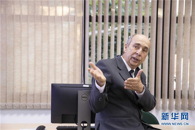 8月30日,在巴西圣若澤杜斯坎普斯,中國-巴西空間天氣聯(lián)合實驗室巴方運營負責人若阿金·科斯塔在介紹實驗室運轉情況。 新華社記者 李明 攝