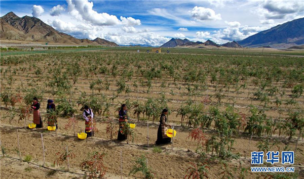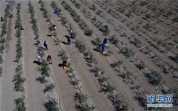 近日,西藏白朗縣萬畝枸杞生態(tài)觀光產(chǎn)業(yè)園進入采摘期。兩年多來,經(jīng)過當?shù)卣推髽I(yè)的共同努力,將原有的沙荒地進行改造,成功栽培7000余畝枸杞目前已果實累累。 新華社記者 張汝鋒 攝