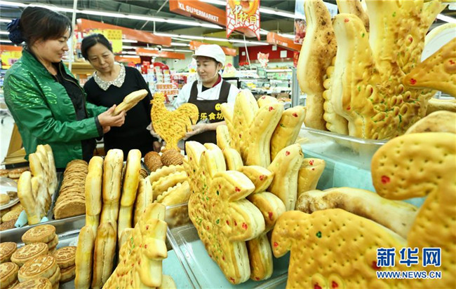 中秋節(jié)前制作“土月餅”是甘肅張掖的傳統(tǒng)習(xí)俗,至今已有千年歷史。“土月餅”用醒發(fā)后的面團(tuán)做成各種造型,再經(jīng)烤制而成,物美價廉,深受市民歡迎。新華社發(fā)(王將 攝)