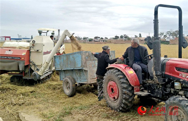 秋高氣爽,位于寧夏回族自治區(qū)銀川市賀蘭縣的水稻陸續(xù)成熟,進入收割期,農(nóng)民搶抓農(nóng)時進行收割。豐收的喜悅,揮灑在人們的汗水中,綻放在人們的笑容里。據(jù)悉,2018年銀川市糧食種植面積138.94萬畝,其中水稻51.16萬畝,玉米53.38萬畝,小麥27萬畝,雜糧7.4萬畝。預計2018年全市糧食產(chǎn)量74萬噸。(閻夢婕、高嘉蔚)