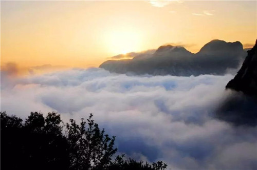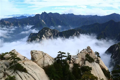 華山的云多變化。有時(shí),天空晴朗,山腰間浮著幾朵白云,像鳥(niǎo)兒在盤(pán)旋;有時(shí),一帶云霧纏繞在峰嶺間,絲絲縷縷,如纖纖玉女般纏綿而多情;有時(shí),山谷間被云霧填滿(mǎn),僅露出一個(gè)山尖兒置身其間宛若在仙宮別苑;有時(shí),云海茫茫,云波涌蕩,恍若隔世;有時(shí),云霧包裹了山巒,人就在云中,移步生煙、吐納含瑞被云霧挾裹著,忘記了塵器的凡俗,忘記了世事的究雜,身心全都融化在了這超然的情境當(dāng)中。