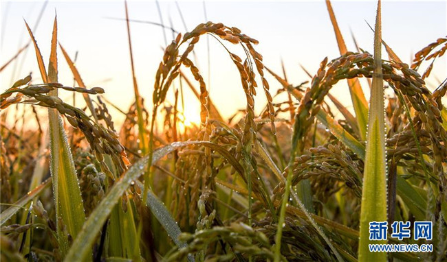 新疆察布查爾錫伯自治縣納達齊牛錄鄉(xiāng)一處待收割的水稻(9月26日攝)。眼下,地處新疆伊犁河谷的察布查爾錫伯自治縣約20萬畝水稻迎來收割季。當(dāng)?shù)剞r(nóng)民搶抓農(nóng)時,忙碌在金色田園中。記者 胡虎虎 攝