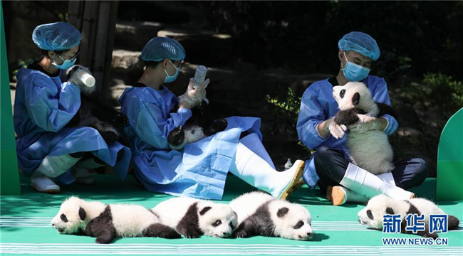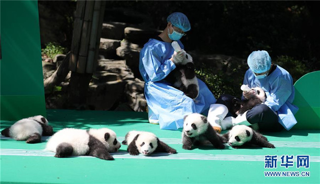 這是9月28日在成都大熊貓繁育研究基地月亮產(chǎn)房拍攝的大熊貓寶寶。 當(dāng)日,成都大熊貓繁育研究基地為2018年出生的12只新生大熊貓寶寶舉行了一場別開生面的亮相活動(dòng)。